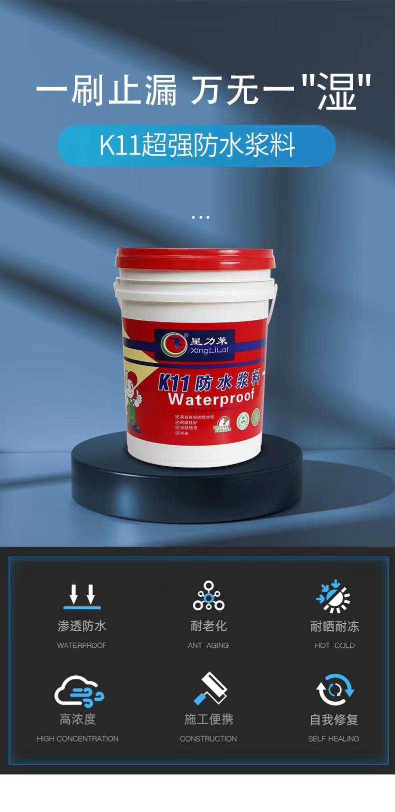 K11防水漿料是一種以抗堿的合成改性水泥基的防水材料,是建筑防水材料,其產(chǎn)品以操作簡易,性能優(yōu)良而超越同類產(chǎn)品。